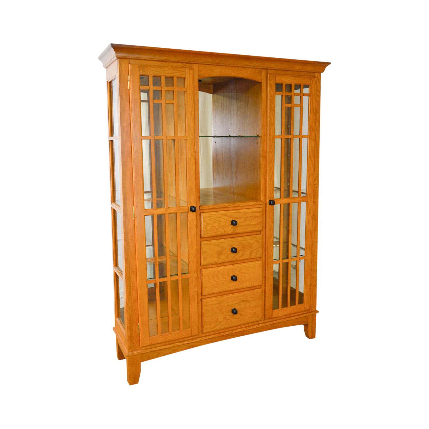 Get Arts And Crafts China Cabinet Pics. 39w 15d 78h please ask. The front and sides of the upper hutch are glass and the back of the hutch has a mirror.